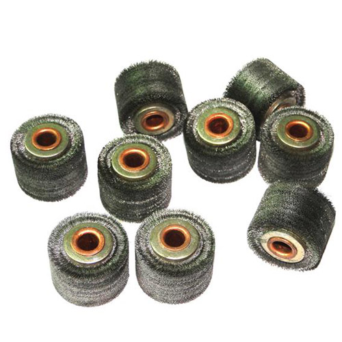 安装与使用 :选择合适的剥漆轮,安装在机器上,将漆包线放在两只剥漆轮的中间,调校两只剥漆轮至漆包线轻轻被夹紧,用手握住线圈部份然后启动开关,试验剥漆效果,可通过调节剥漆轮互相之间接触面的压力,控制达到理想的剥漆效果。 工作时将漆包线放入两只剥漆轮间的中间,然后将漆包线轻松地从剥漆轮间的拉出,剥漆工作即完成,因为当机器在工作时,剥漆轮高速旋转将漆包线的绝缘漆或氧化物磨掉,剥漆后的漆包线,表面是光亮清洁。 当尼龙纤维剥漆轮在工作中出现表面不平或者凹凸是会引起断线或剥漆不干净的情况,此时剥漆轮是需要修整的,可以使用砂布将剥漆轮修整磨平,直至两只剥轮能平整接触,工作中定期地修整剥漆轮,这样可以增加剥漆轮的使用寿命。 需要换新的剥漆轮时,只要将不能再使用的剥漆轮由轴上抽出,然后插上新的剥漆轮,即可重新开始工作。(安装钢丝剥漆轮时要注意钢丝轮有方向性)