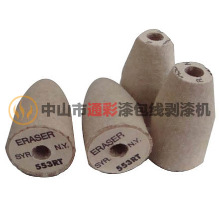 ERASER纤维磨轮|553RT锥形磨漆轮为美国ERASER原公司进口产品,用于漆包线剥漆机/漆包线磨漆机上,能彻底清除线面上任何坚硬的绝缘漆,搪瓷漆,ML,lsonel等,而绝不损害铜(铝)线本身。适合线径范围:AWG45-28(0.04-0.3mmØ),适合较幼的细线,并可以同时处理多股漆包线。操作方便,效果出色。